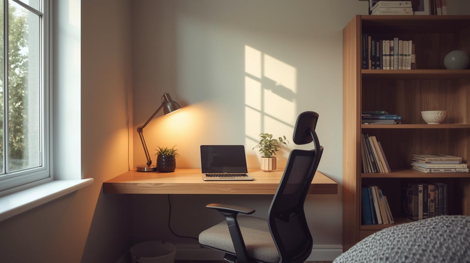 Keep things simple with a clean-lined desk, ergonomic chair, and minimal accessories. A minimalist approach prevents clutter and makes the space feel larger. Neutral colors and natural light enhance the airy vibe. This setup is ideal if you prefer a distraction-free zone.